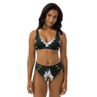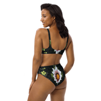 This beautiful VIBRANT FLOWER 2 piece High-Waisted Bikini is destined to become the only swimsuit you want to reach for in your drawer! The bottoms are high-waisted. Both come with a tear-away care label. These features make it comfortable and flattering on many different body types.